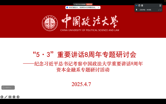 会议伊始,胡继晔教授回顾了总书记5·3讲话的重要背景,表示讲话深刻体现了党中央对法治建设和高等教育发展的高度重视,为学校的发展方向和育人目标提供了根本遵循。总书记强调“立德树人、德法兼修、抓好法治人才培养”,为我校师生指明了使命和方向。