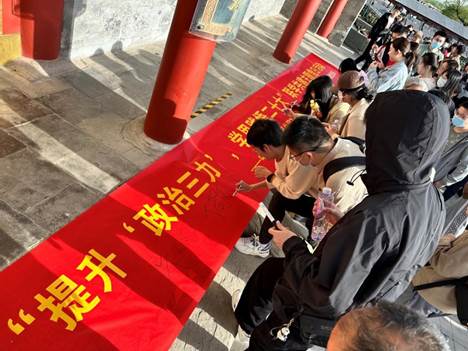 观展后,全体成员在横幅上签字,强化作为党支部成员的责任感与使命感。参加活动的党员们表示会时刻牢记入党誓词,守护初心,坚守使命,始终做到初心如磐、使命在肩。