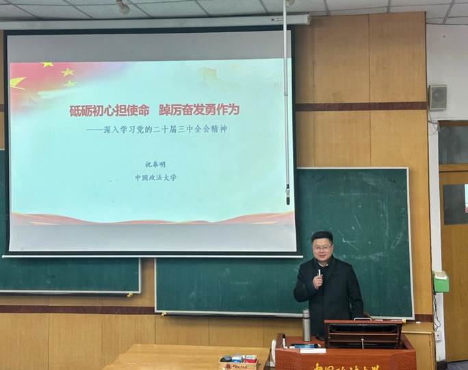 祝奉明副教授主讲,第一党支部书记王晓曦主持,第三党支部书记张力元出席,三个党支部的党员、积极分子均参会学习。