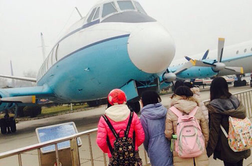 在参观中,几乎每一架飞机都有其动人故事。比如“香玉剧社号”就是由我国著名的戏曲表演艺术家常香玉在抗日战争期间赠送给军方的;还有撒下敬爱的周总理骨灰的那一架飞机原型等等。
