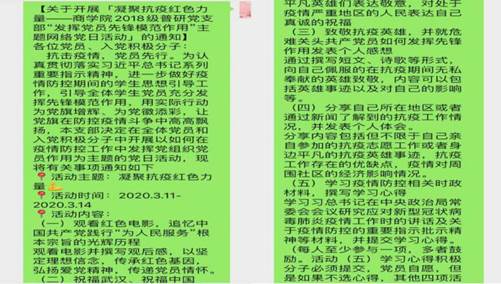 2018级普研党支部于3月10日至20日组织开展了“凝聚抗疫红色力量,发挥党员先锋模范作用”一系列主题网络党日活动。