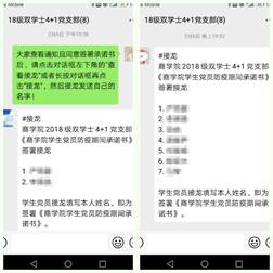 校党委下放《关于在疫情防控中进一步发挥各级党组织和党员作用的通知》的工作方案后,18级工双4+1党支部支委会将该工作方案传达给支部党员。党员们积极相应,支部7位党员全部在线签署了《凤凰彩票