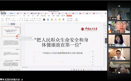 2018级研究生党支部在线顺利开展组织生活会、以“把人民群众生命安全和身体健康放在第一位”为主题的讲党课活动以及相关理论学习。