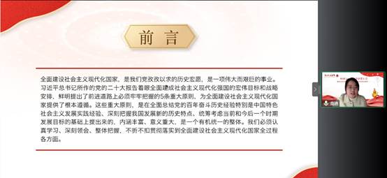 党支部书记侯冠宇进行最后总结,通过此次的理论学习,使我们厘清了中国共产党领导中国式现代化的演进历程及文明追求,把握了中国式现代化与人类文明新形态的内在联系性和统一性,有助于深刻理解中国式现代化的历史逻辑、现实逻辑和未来逻辑,更好学习贯彻落实党的二十大精神实质,增强全面建设社会主义现代化国家、全面推进中华民族伟大复兴。