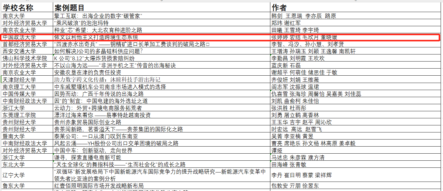 国际商务系宏结教授、张婷婷副主任参加了本次会议。张婷婷副教授(第一作者)提交的教学案例《依文以利他主义打造跨境生态系统》获评本届示范教学案例,入选中国专业硕士学位案例库。中国政法大学国际商务专业硕士学位点自2018年获批以来,首次成功入库示范案例。