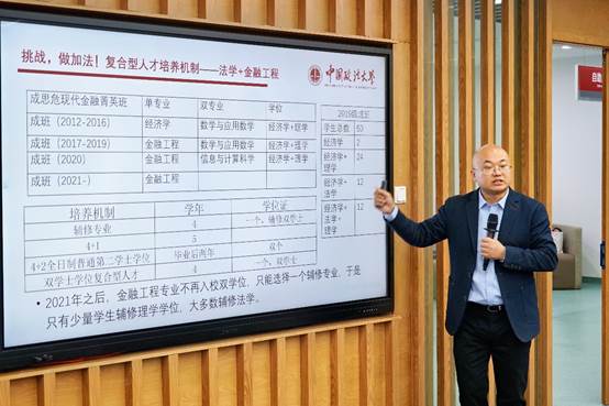 王新清教授指出,法大在法学专业方面的实力毋庸置疑,金融学方面的实力也十分充分,应当从两个方面考虑培养复合型人才的问题,其一是要根据国家政策突破复合型人才培养的阻碍;其二是课程设置的问题,要探索科学合理的匹配机制进行课程融合式设置,部分课程内容可以合并。