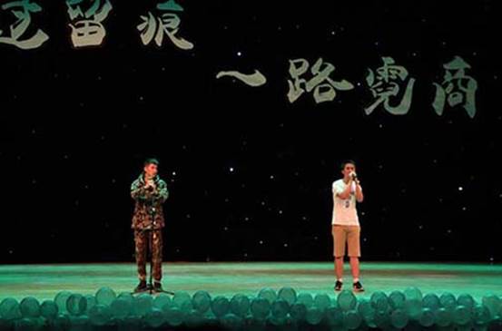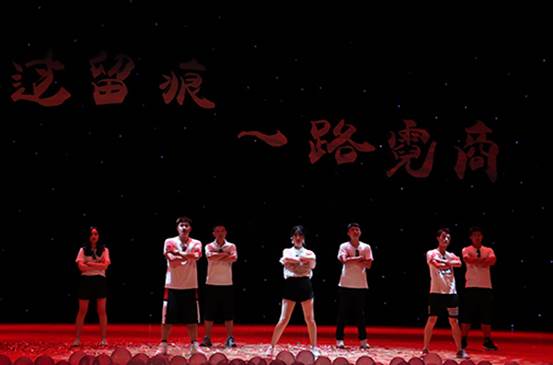 接下来是成思危现代金融菁英班的节目——《“成”就青春》。一把吉他,两把琵琶,油纸伞下的舞者如精灵般绽放着优美的舞姿。随后曲风转换,一段新疆舞蹈纵情展现着异域风情,大红的裙摆飞扬着火一般的热情。之后的歌曲串烧中,《平凡之路》的歌喉低处沉稳,高潮动人;《以人民的名义》的嗓音低沉有力,饱含深情;《一路顺风》的歌声满怀祝福,温情无限。最后,伴随屏幕滚动的班级照片,成班学子带来集体朗诵,怀念这四年用青春的丝线,用幸福的璎珞编织成的日子,赢得满堂喝彩。