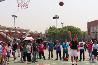 (图:刘纪鹏院长参与定点投篮)