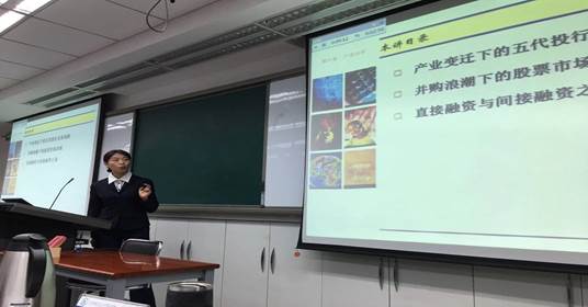 (图:成福蕊讲授《产业分析—投行崛起与业务创新》)