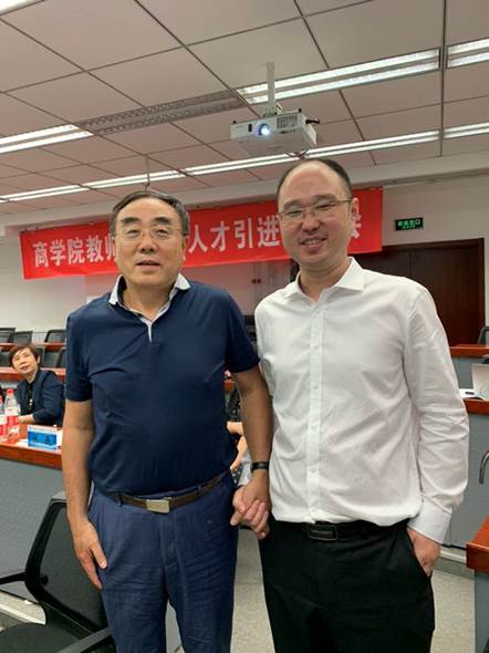 组织的人才招聘试讲会之后,刘纪鹏院长接见了丛颖男并热情和他合影,同时向他表明大数据是我院未来非常重视的专业之一,希望能够引进最优秀的人才,更好地建设和充实该专业。