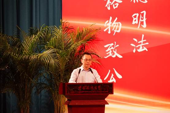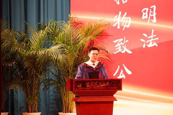 教师代表宏结老师向全体毕业生致辞。宏结老师从对军都山下四年岁月的追忆开始,讲述了这么多年来同学们和老师、家长共同走过的风风雨雨。宏结也将自己的个人经历以及学生们的经历和大家做了分享,希望同学们在毕业之后能够继续以法大为家、以商院为家,“商院的大门永远向你们敞开!”