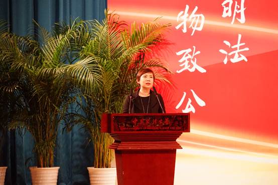 随后是学术硕士研究生代表钟玲玲同学的发言。她在回顾自己求学岁月的同时,也分享了自己对于母校、故人之情的感悟。在发言的最后,她表示能来到法大是自己人生中的一大幸事,并且希望能将在此学到的东西作为未来行事的准则,不忘初心,继续前行。