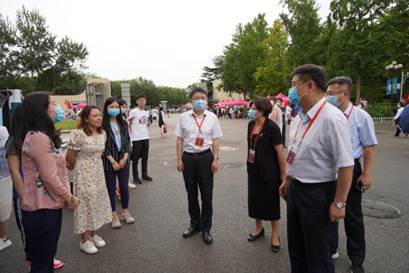 迎新现场,视察迎新工作情况,并与前来报到的新生亲切交流。
