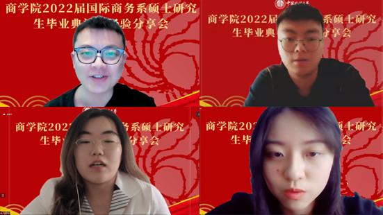 研究生工作办公室郑晓燕、燕都、叶青等多位老师出席会议,国际商务系2022届学硕和专硕毕业生,2020级和2021级在校研究生50余人参加了本次分享会。