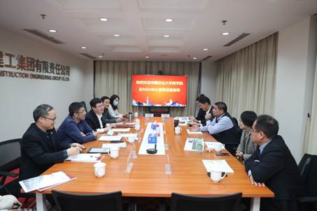 办公室主任肖富荣与MBA教育中心招生部何奕平随行。中国政法大学MBA2013级校友、全国五一劳动奖章称号获得者、北京建工集团有限责任公司总承包部总经理白恒宏接待了商院长一行。总承包部总经理助理、办公室主任卢次明,总承包部人力资源部副部长丁祎,中国政法大学2005届校友、总承包部法律合约部主管徐姗姗,中国政法大学2022届校友、总承包部山东区域市场经理王苗,也参加了本次签字仪式。