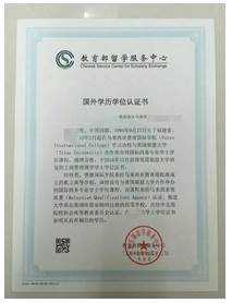《教育部留学服务中心认证报告》示例
