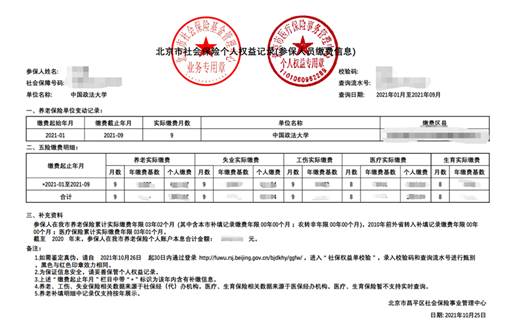 (北京市社会保险个人权益记录示例)