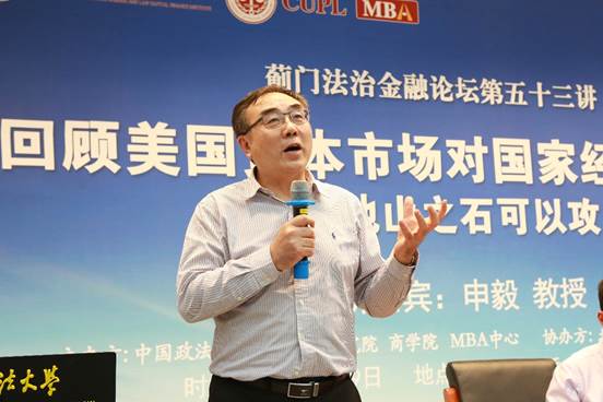 【中国MBA教育网供】随着当下中美贸易战、金融战愈演愈烈,越来越多的国人对此引发思考。为使法大学子更好的武装金融知识头脑,掌握金融博弈战术战略。2018年5月9日晚18点30分,在中国政法大学科研楼二层学术报告厅举办了《蓟门法治金融论坛第53讲·美国股市200年国家贡献与中国股市振兴借鉴——他山之石可以攻玉》主题讲座。本次讲座特邀凤凰彩票-凤凰彩票平台官网