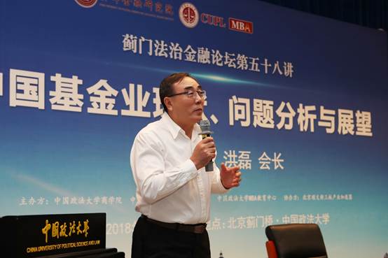 随后,中国基金业协会党委书记、会长洪磊从私募基金行业发展现状、问题与改革取向等方面为法大学子奉献了一场精彩的演讲。