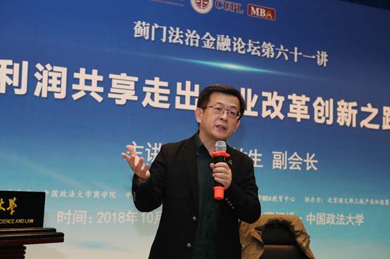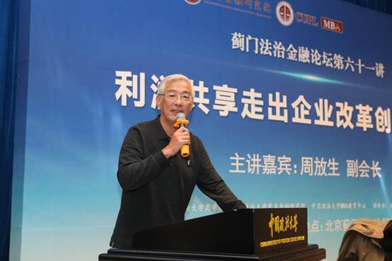 改革开放四十年,混合所有制改革步履维艰,也遇到了理论上的瓶颈,为尽快找到新的改革创新之路,实现劳动与资本从对立分步走向和谐统一。2018年10月24日晚18点30分,蓟门法治金融论坛第61讲——《利润共享走出企业改革创新之路》在中国政法大学科研楼二层学术报告厅准时召开。本次论坛特邀中国企业改革与发展研究会副会长,原国务院国资委企业改革局副局长周放生为主讲嘉宾,凤凰彩票-凤凰彩票平台官网