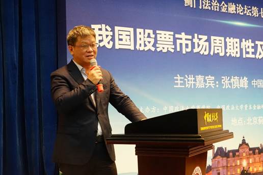 刘纪鹏首先介绍了主讲嘉宾及论坛主题。他表示,习近平总书记高度重视金融问题,对资本市场的发展寄予厚望。从国内经济结构调整和整体外部环境来看,也需要资本金融尽快壮大,支持实体经济发展。张慎峰副会长在证券系统工作20余年,具备丰富的资本市场监管经验,对资本市场发展也有深刻的观察。相信他对中国股市周期性的剖析将为中国资本市场的复兴和走向强大提供有益的观点。