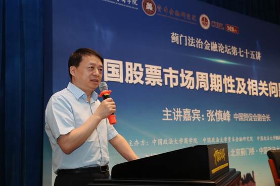 中国政法大学校长马怀德为张慎峰会长颁发中国政法大学客座教授聘书并致欢迎辞。马怀德校长高度肯定了蓟门法治金融论坛对政法大学的学术贡献和热烈的社会反响!他表示,中国股市对于大多数中小投资者来说,既有美好憧憬也有血泪之痛。张慎峰会长长期从事金融监管工作,是该领域的权威专家,期待张会长分享关于股市的周期性发展规律的独到见解,为热心资本市场的投资者解开长久以来的疑惑的同时,也为大家带来信心和希望。