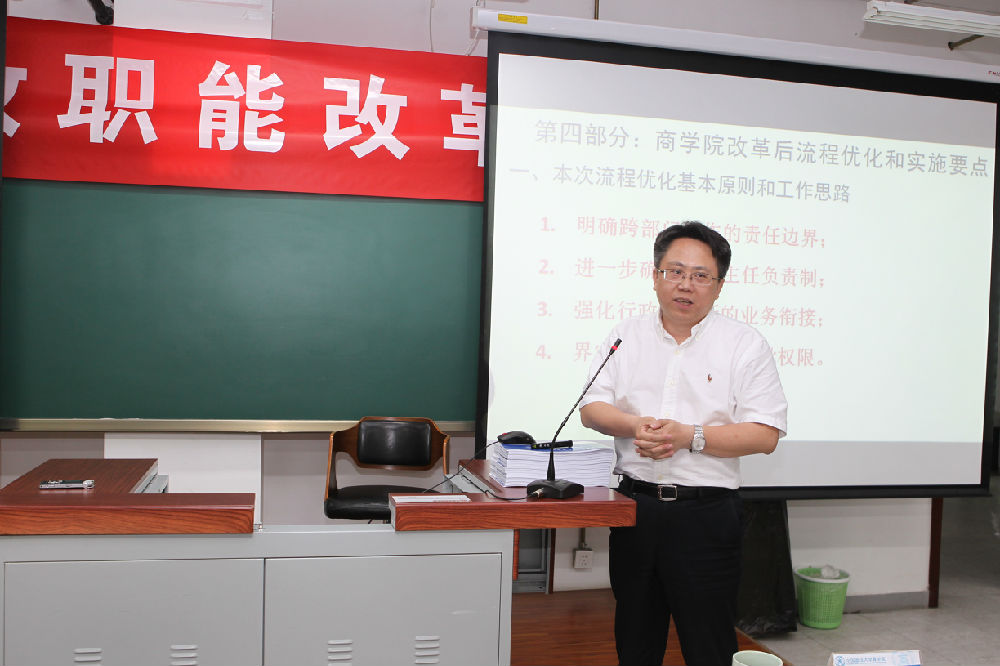 从教师到本科,普研及MBA全部教学及行政管理环节,实现行政与各系所间的业务无缝衔接。期间,刘院长多次对王霆教授和田明教授带领的行政体系改革领导小组和工作小组的辛苦工作给予高度肯定! 也对参与此次行政体系改革的14个职能部门付出的汗水和努力,给予高度赞扬!