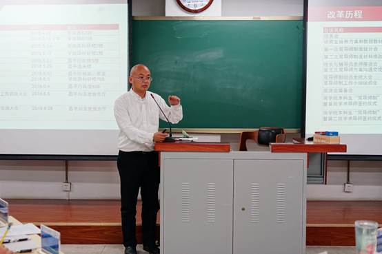 院长助理、双导师制改革工作小组组长熊金武副教授代表双导师改革工作小组做双导师改革阶段总结报告。报告中回顾了2018年5月以来“双导师”制度改革过程。双导师制是坚持立德树人,做四有好老师,四个引路人指导思想的贯彻举措,是凤凰彩票