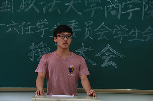 接下来第十五任学生委员会主任范翔宇师兄提名唐铭同学为第十六任学生委员会主任。26名代表同意,1名代表弃权,超过应到人数二分之一,唐铭同学成功当选第十六任学生委员会主任。