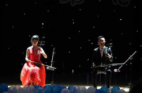 紧接着,国际商务一班为观众带来歌曲《赛马、突然的自我、小幸运》。在《青春纪念册》的旋律中,屏幕上出现一张张可爱的面孔,他们给彼此送上最美的祝福。随后,两位同学为大家带来二胡演奏《赛马》,乐曲以磅礴的气势、奔放的旋律为观众展现了一幅生动热烈的赛马场面。紧接着,《突然的自我》响起,几位同学深情演唱,用歌声表达友谊的珍贵。最后,国商一班的同学们集体演唱《小幸运》,他们歌颂相遇的美好,正如“与你相遇,好幸运”。