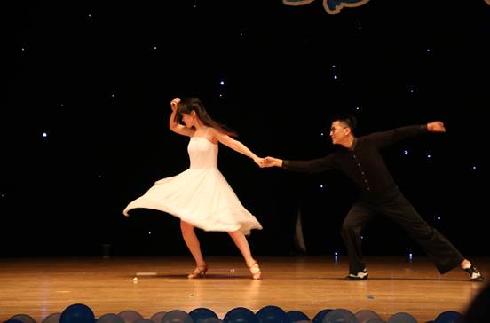 接下来工商管理二班用表演《此事古难全》将观众带入晚会中篇——记忆如歌。一段满是回忆的视频在屏幕上播放,大家共同怀念着曾经的青涩,感动着如今的收获。之后,两位帅气的男生带来一曲《消愁》,优美动听的歌声沁人心脾。随后,一支双人舞蹈用曼妙的舞姿向观众演绎了毕业季的不舍与眷恋。紧接着,工管二班的学生们在朗诵中追忆往昔,用深情的话语表达四年的感动。最后,他们唱起《送别》,用歌声为离开画上完美句点。