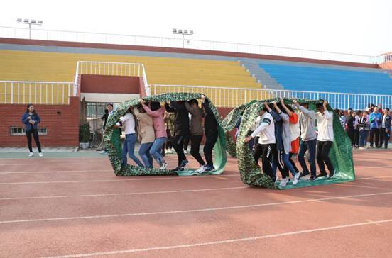 “无敌风火轮”也是精彩万分。参赛的选手们被一条长长的布料所包围,以手足为轮毂,多人一组,只待令声响起便向前疾驰。比赛过程中,有的团队密切合作,迅速取得优势、率先冲过终点;也有配合不力的队伍,在行进过程中显得左支右绌。但是各队都坚持以自己的方式完成了比赛,其中配合最佳的队伍是成班1601,以最短的时间顺利完成了比赛。