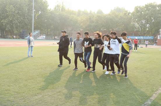 随后进行的是“绑腿跑”项目。有的小组配合默契,前进得十分顺利,而有的小组则差强人意,艰难前行,但是所有的小组都始终坚持跑到终点。在一番紧张而激烈的较量后,成班1701最终取得了比赛的胜利。
