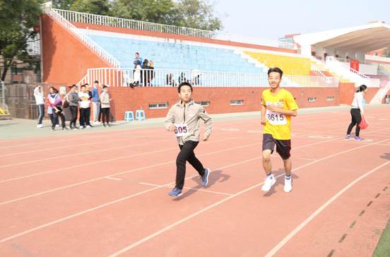 随后的两场单人径赛是男子1500米与女子800米比赛。遥远的赛程和炽热的太阳并没有阻止运动员的比赛激情,他们不顾身体的劳累和肌肉的酸痛,坚持完成比赛。贾彪同学,肖瑶同学以其出色的耐力分获男子1500米和女子800米的冠军。