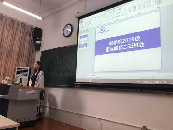 本科新生入学系列班会在2019级辅导员王晓曦的主持下顺利举行。本次系列班会由经济一班开始,按照经济学一班、国际商务一班、金融工程班、国际商务二班、工商管理一班、工商管理二班、工商管理三班的顺序进行。