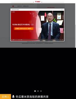 最后,参与本次团日活动的同学一同观看了系列课程的第4讲《从国际角度看中国防疫》,在对新知识和新希望的憧憬中结束了这次颇具意义的主题团日活动。