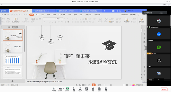 随后,18级MBA刘秀硕先为同学们讲解了今年的就业形势,尤其是考公务员比例等数据图,建议大家不要好高骛远,不一定非要去大城市,可以选择其他城市或者二线城市,同学们都觉得对就业形势分析的很好。