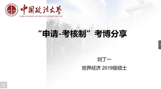 刘丁一同学分享了从决定考博到完成考博整个流程中所要注意的问题。在择校环节中,刘丁一同学建议广大同学们多和硕士生导师进行交流沟通,从而确定符合自身条件的院校和目标博士生导师。材料申请环节过程中,除了学术研究成果材料外,刘同学还特意强调了外语证书的重要性,意向攻读博士的同学要面对将来阅读大量国外期刊的科研路程,因此外语证书在材料申请环节中也占据了重要地位,并鼓励同学们尽早的将语言证书拿到。笔试环节中,鉴于部分同学会申报多所目标院校,因而刘同学建议同学们采取先难后易的方法进行备考复习,复习之中多做相关知识的整理,最好自身能够整理和归纳出专业知识的逻辑框架,从而更加从容的面对专业课的笔试。面试环节中,刘同学建议同学们尽可能地展示自己的研究兴趣以及和院校项目的匹配度,不要过度紧张。