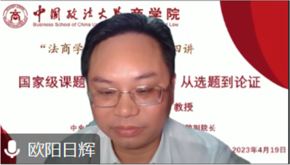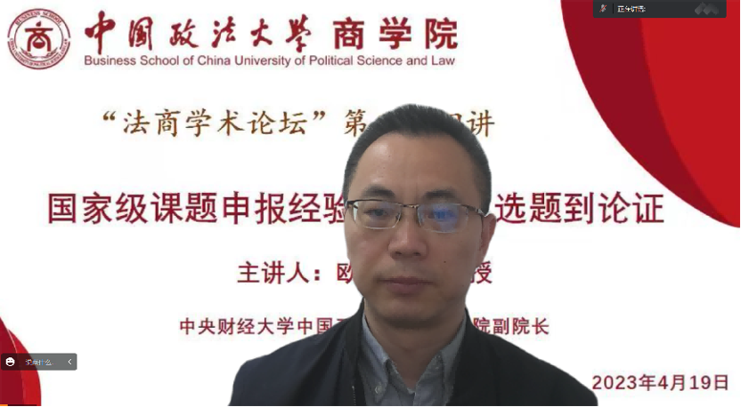 2023年4月19日晚上19:00,中央财经大学中国互联网经济研究院副院长欧阳日辉教授应我院之邀,在腾讯线上会议进行了题为“国家级课题申报经验分享:从选题到论证”的专题讲座。本院师生以及其他高校的师生共一百余人参与了此次讲座。讲座由凤凰彩票