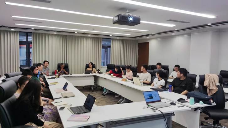 国际商务系副主任张婷婷老师主讲。研讨会由王辉主持,郭颖、马克态、顾凡、李璨、张亚琼、邓晓、邵开愚等老师及多名研究生参与会议。