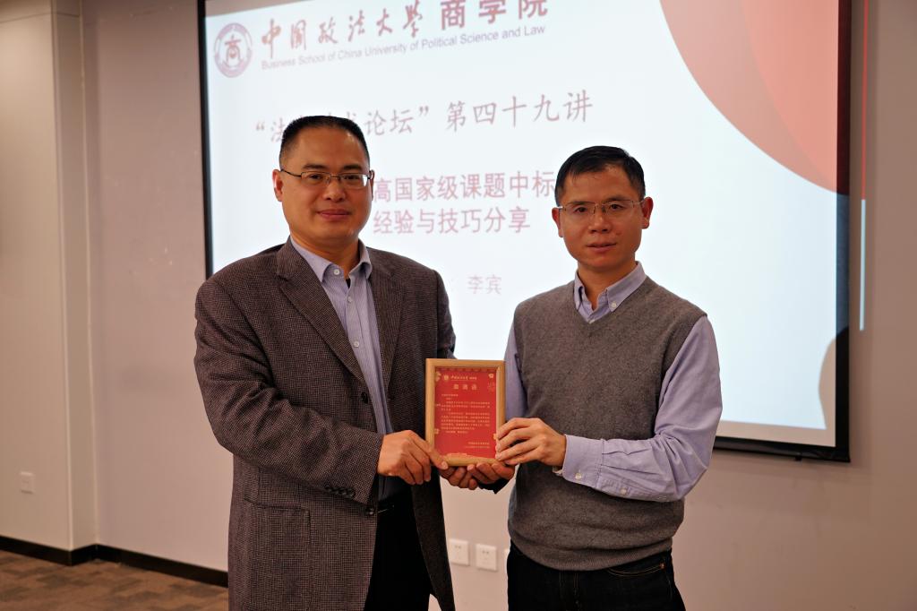 在热烈的掌声中,刘志雄向李宾赠送邀请函,论坛圆满结束。