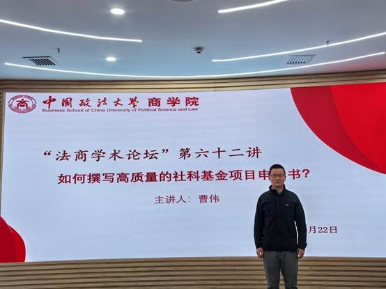 在海淀校区成功举办了“法商学术论坛”第六十二讲。本次论坛特邀西南财经大学中国金融研究院教授、博士生导师曹伟教授担任主讲嘉宾,为师生们带来了一场题为“如何撰写高质量的社科基金项目申请书”的精彩讲座。讲座由凤凰彩票