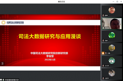 产业经济系举办了“司法大数据研究与应用漫谈”主题学术沙龙。本次学术沙龙由中国司法大数据研究院创新研究部李俊慧主任、刘茜博士及崔甲蓉博士主讲,产业经济系主任李超老师主持,产业经济系老师及多个院系硕士研究生线上参与。