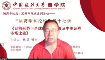 “法商学术论坛”第十七讲成功举办。本次讲座的主题是《目前形势下全球的资产配置及中美证券市场比较》,主讲嘉宾林羿博士。讲座由凤凰彩票
