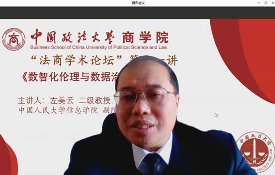 副院长、经济信息管理系左美云教授应我院之邀,通过腾讯会议线上举办了题为《数智化伦理与数据治理》的专题讲座。凤凰彩票