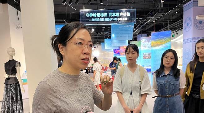 本次活动展现了独具魅力的哈尼族红河文化。哈尼族主要分布于中国云南元江和澜沧江之间,聚居于红河、江城、墨江及新平、镇沅等县,他们是中国最早的农耕民族之一,拥有悠久的历史和独特的文化传统,其中哈尼族梯田是他们智慧和努力的结晶,也是中国古代农耕文明的杰作之一,被誉为世界文化遗产。红河文化是云南省红河哈尼族彝族自治州地区的一种古代文化遗产,得名于红河流域,它以精美的陶器工艺而闻名,红陶和黑陶是其代表性的陶器类型,这些陶器常常以纹饰和装饰品为特色,如刻花、刻线和贝壳等。同时,红河文化还发展了独特的玉器工艺,制作出精美的玉器器物。红河文化人民崇拜自然,尤其是太阳和月亮,认为它们具有神圣的力量。活动通过逛哈尼集市、歌舞表演、时装走秀等形式,多层次展现了哈尼梯田的文化遗产价值,让大家深深感受到了历史中人文荟萃特有的魅力。
