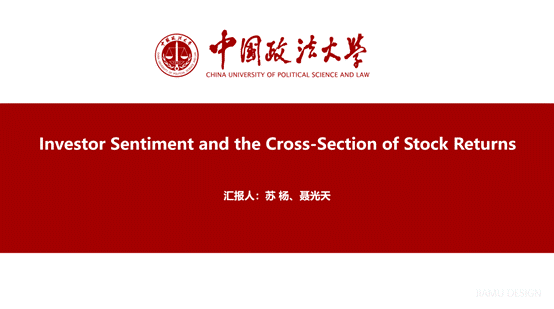 苏杨同学先为大家讲解了这篇论文的概述和前三节。他首先用概述了整篇文章与传统金融有效市场假说的区别,并指出本文的研究内容、研究结论和研究思路。第一节是投资者情绪对股票回报横截面的影响,并进行了理论预测。第二节是关于1961年至2002年期间的投资者情绪历史记录,与理论预测匹配。但仍需要更加严谨的检验。后面内容即是实证检验部分。苏杨同学先为大家介绍了第三节,即指标,分别从衡量回报和投资者情绪两个方面进行说明。