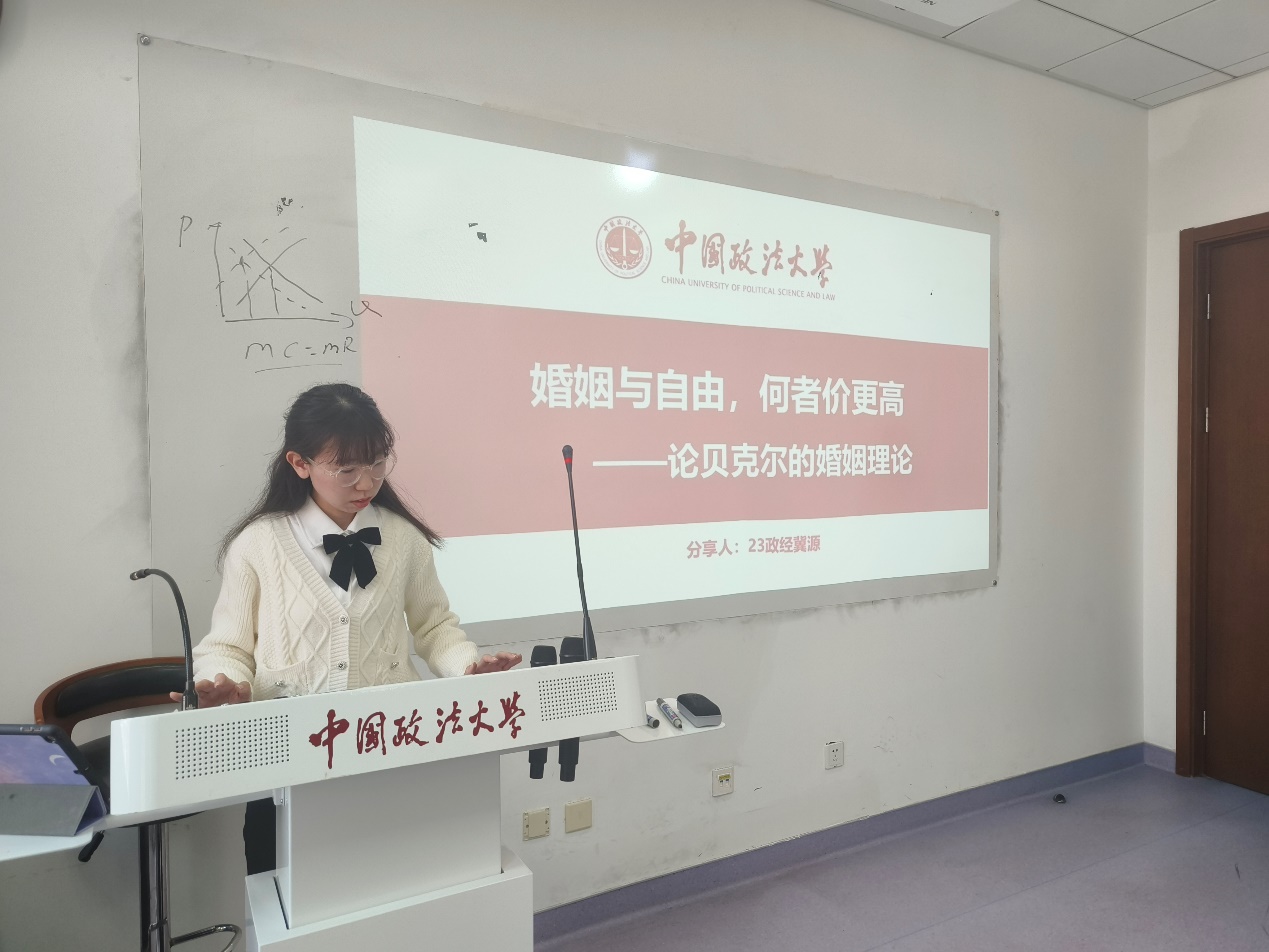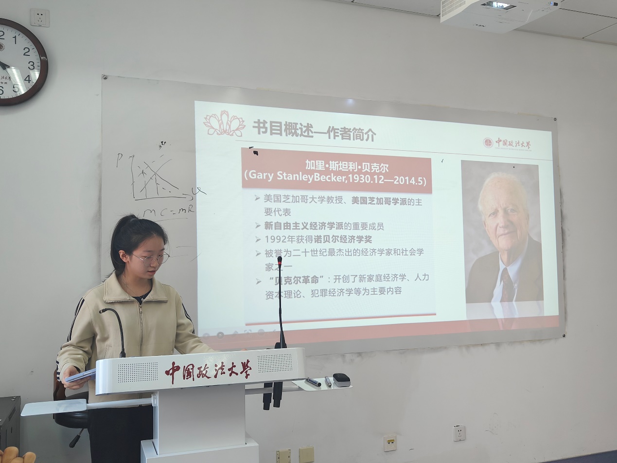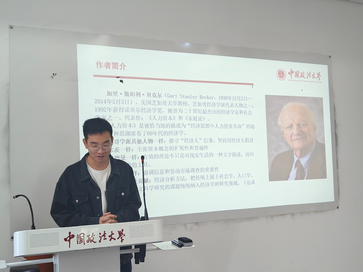 路校区综合楼0607成功举办2023年第6期(总第49期)研究生读书会,阅读书目为诺贝尔经济学奖获得者加里·贝克尔的著作《人类行为的经济分析》。本次读书会由经济系周敏丹老师、司海平老师和赵文睿老师共同指导,熊柴老师推荐书目并主持。2022级和2023级政治经济学、西方经济学专业的同学们共同参加。2022级尹福、申晨笛同学以及2023级蔡雨颖、冀源同学做主报告。