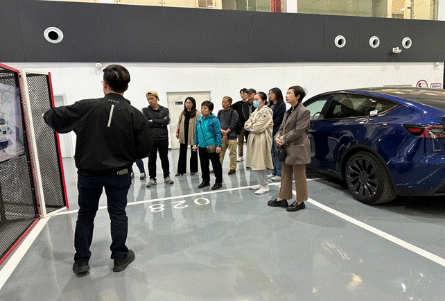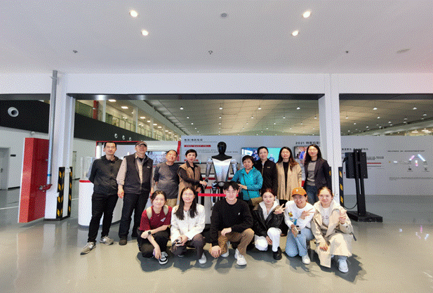 宏结教授、金仁淑教授、梁涵主任、胡明教授、王玲教授、张婷婷副教授、张硕老师、王晓明老师和国际商务系研究生们一行前往位于北京的特斯拉GIGA博物馆参观和调研,此次参观活动旨在深化学生对于新能源汽车智能制造的认识,对新能源汽车的全球营销模式的了解。