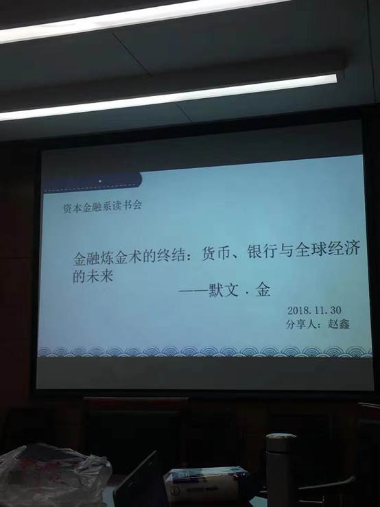 金融学系2018-2019学年第二次研究生读书报告会在科研楼B210会议室如期举行。出席本次活动的有资本金融系程碧波副教授、成福蕊副教授和李伯尧老师以及2018级全体金融学专业研究生。本次读书会分享的是前英格兰银行行长默文·金所写的《金融炼金术的终结——货币、银行与全球经济的未来》一书。